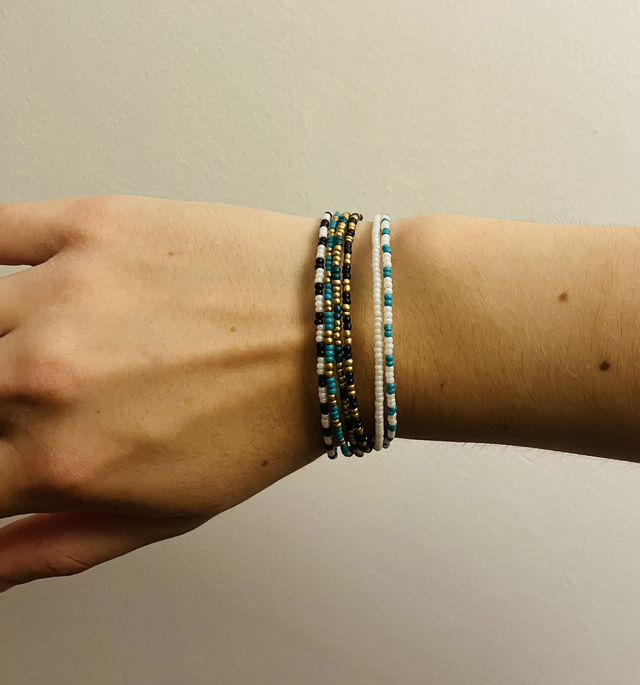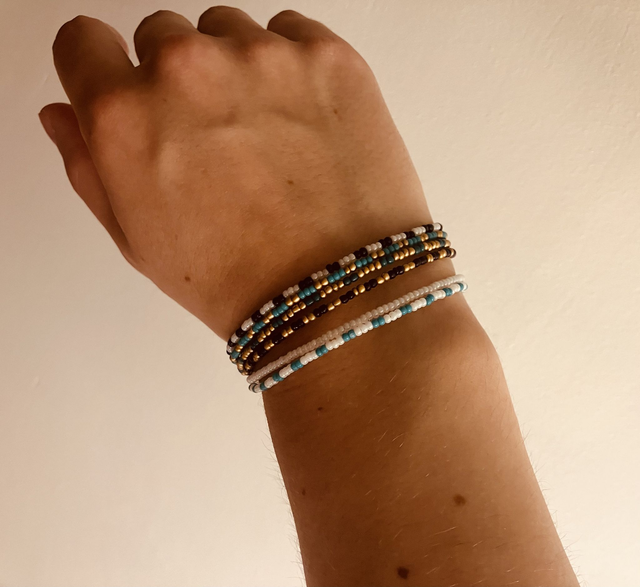 Handmade, these bracelets are meant to be collected ! Black, white, blue, gold, green : there is one bracelet for each one !