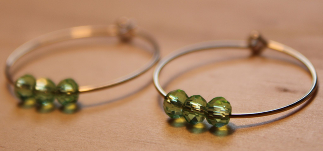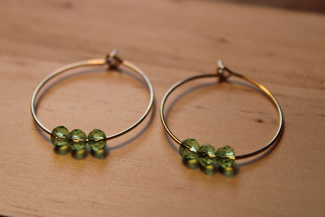Indulge in elegance and uniqueness with our handmade τρία (tría-trois) earrings. These trendy hoops are adorned with delicate green beads, adding a touch of sophistication to any outfit. Stand out from the crowd with this one-of-a-kind piece.